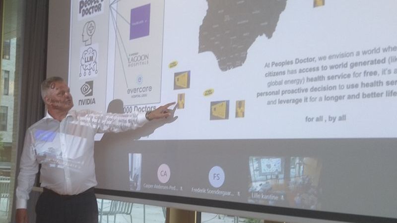 After the General Assembly there was a members' meeting whereLars Munch Johansen (有朋)andCarl J. Brandtpresented their new company People's Doctor, which is about to be launched in Nigeria. The company's vision is that 239 million Nigerians, via their mobile phone and AI (artificial Intelligence), should have access to their own virtual doctor day and night.